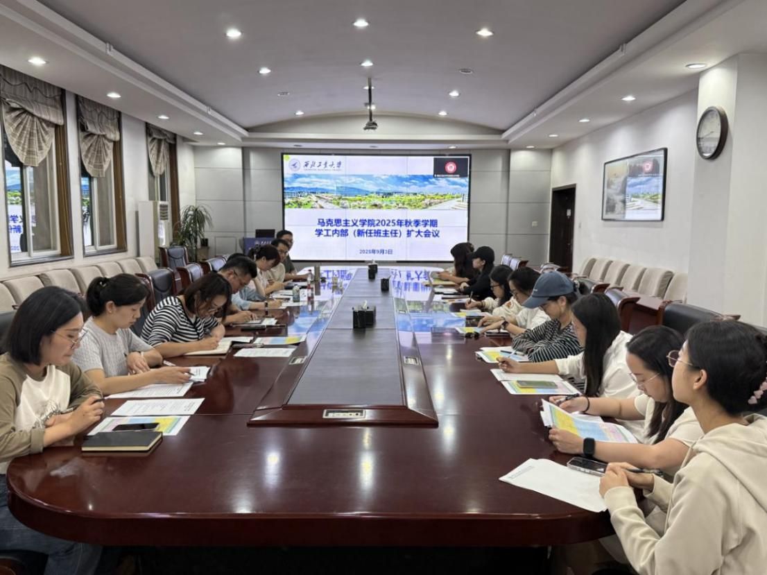 9月3日晚,学院学工内部(新任班主任)扩大会议在208会议室召开。学院党委副书记耿云辉,辅导员王换、许斯诺、董润,2025级新生班主任熊成帅、聂阳、陈千千,学工主管刘敏,组织员任梦及全体学生干部参会。会议由耿云辉主持。