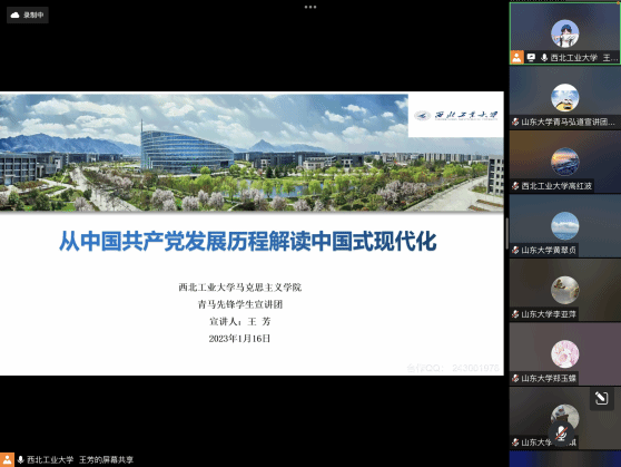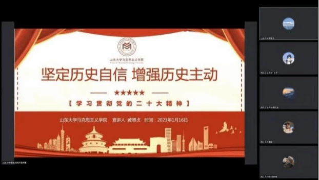 为进一步引导广大青年学生深入学习宣传贯彻党的二十大精神,深入推进党的二十大精神入脑入心、走实走深、见行见效,持续在高校青年中掀起学习热潮,2023年1月16日晚七点,调教漫画 青马先锋学生宣讲团与山东大学调教漫画 “青马弘道”理论宣讲团联合举办“联学共建齐宣讲,同心同行谱新篇”主题宣讲活动。