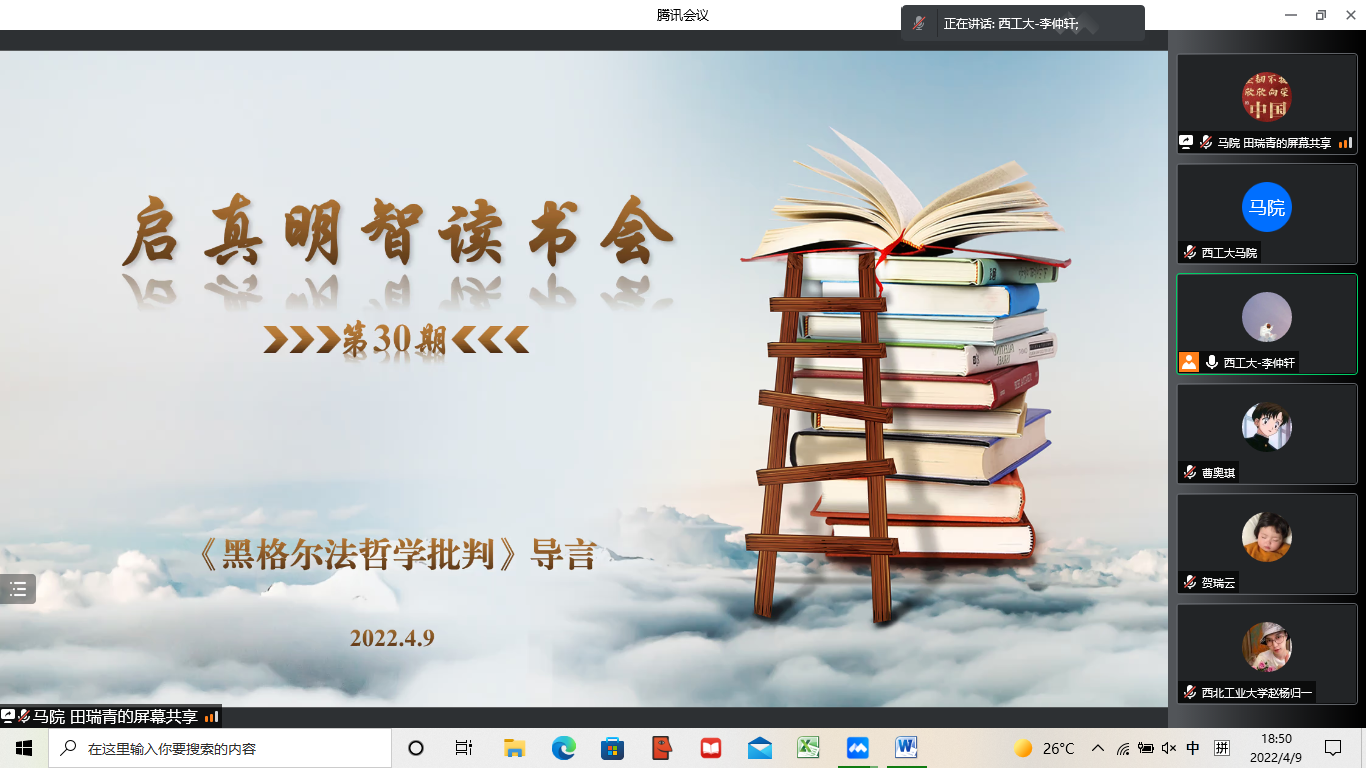 2022年4月9日晚七点,“启真明智”读书会第30期在腾讯会议顺利举行,本次读书会邀请调教漫画