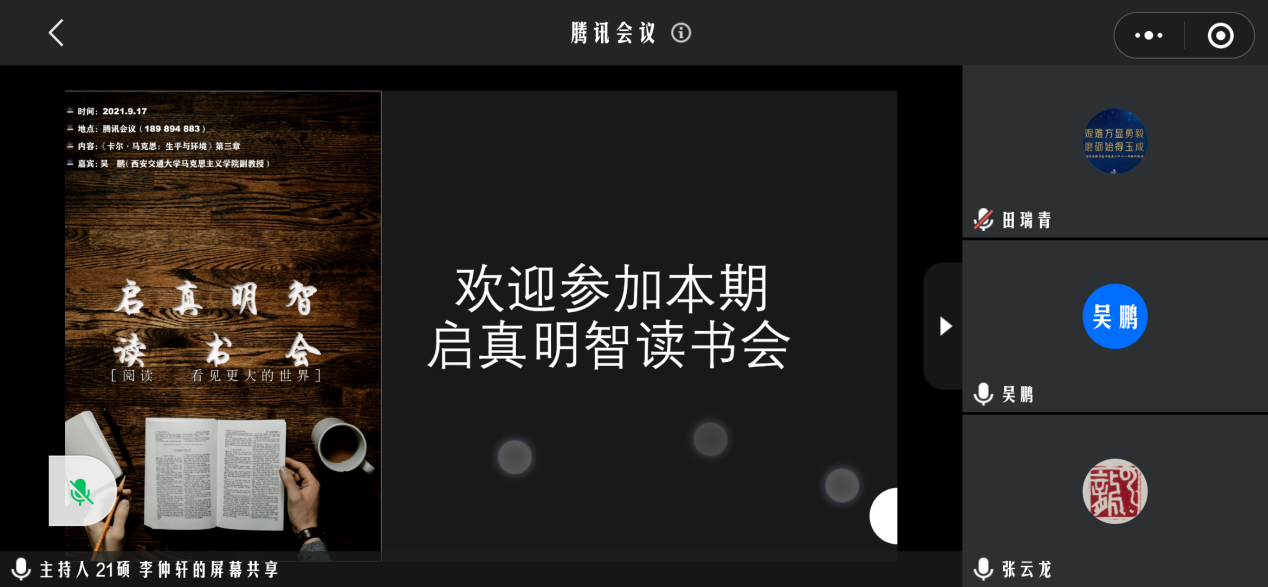 2021年9月17日,启真明智读书会通过腾讯会议顺利举行,本次读书会邀请到西安交通大学调教漫画