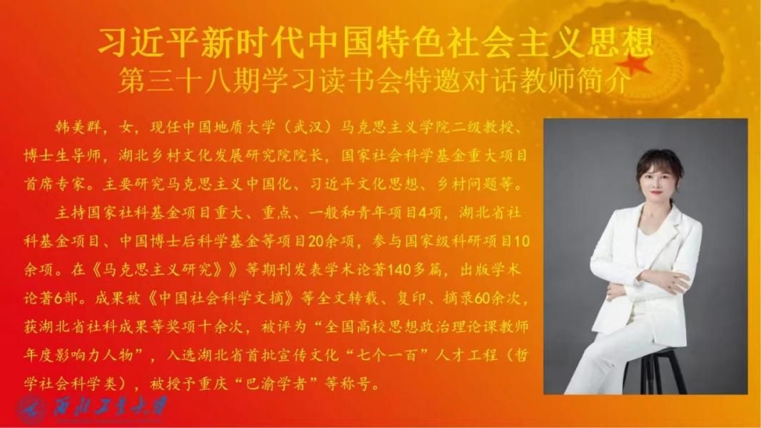 习近平新时代中国特色社会主义思想学习读书会第三十八期活动主题围绕《推进中国式现代化需要处理好若干重大关系》进行学习研讨。本次读书会由学院思想政治教育系主任、博士生导师鲁杰教授发起,学院硕士生祁嘉仪主持,中国地质大学调教漫画