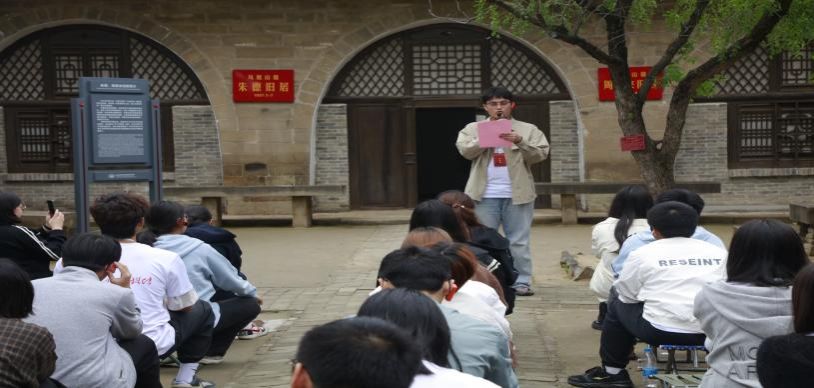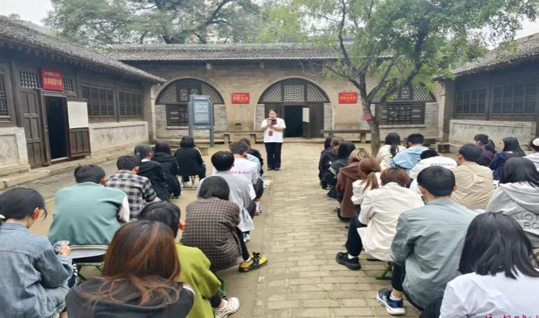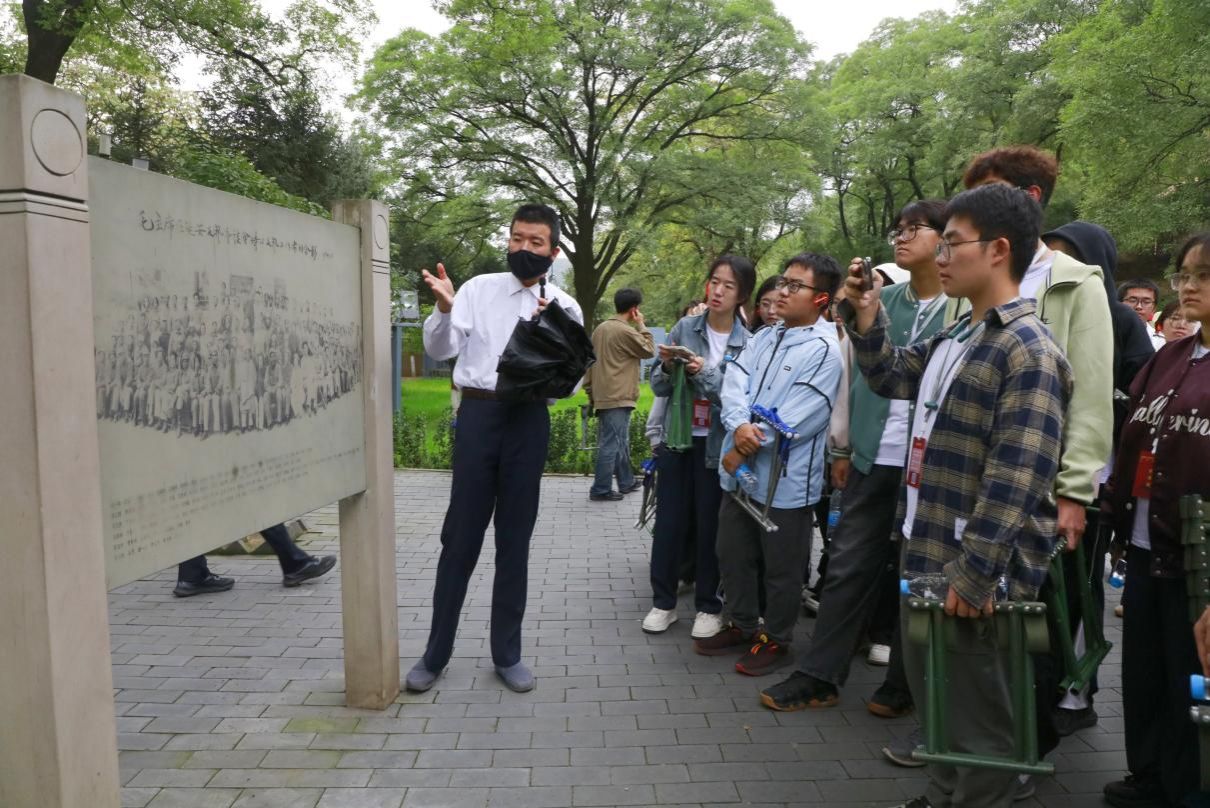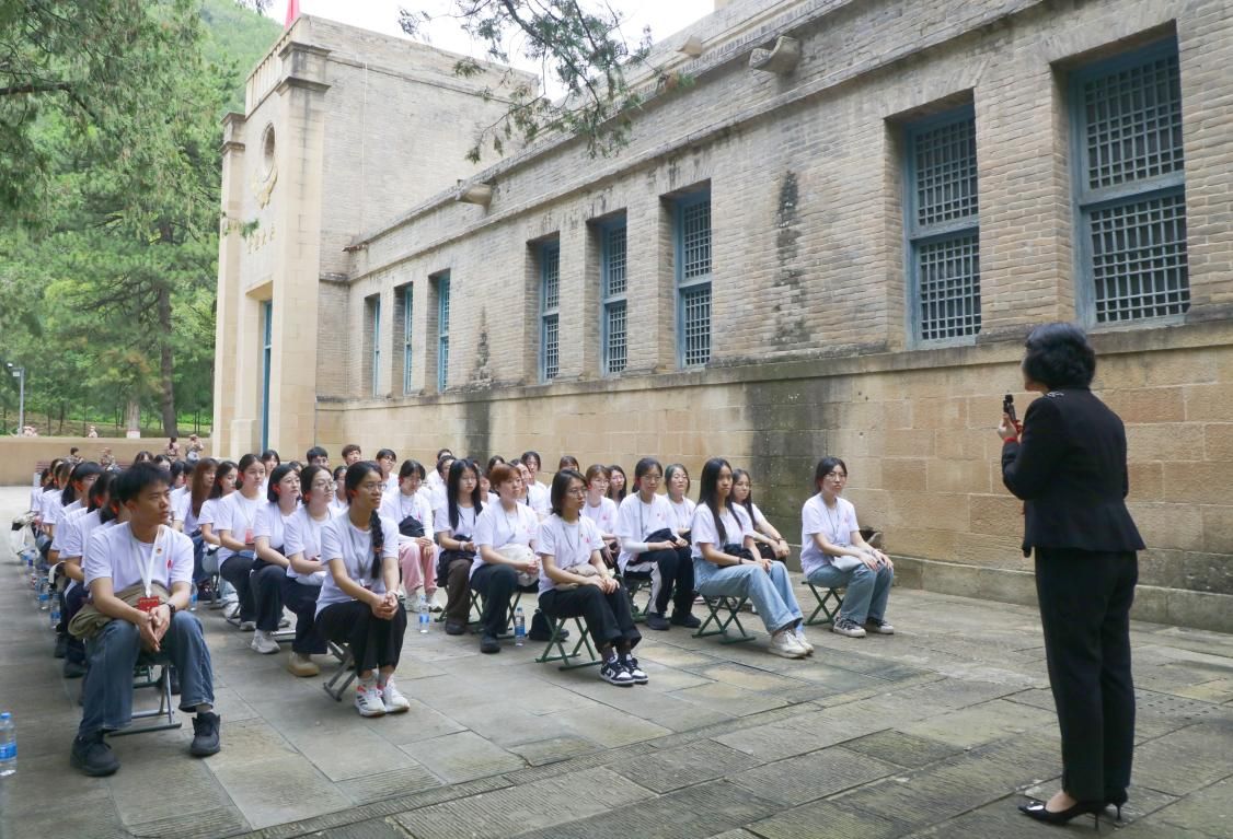 9月27日实践队来到杨家岭革命旧址、枣园革命旧址,开展实践教学。杨家岭革命旧址管理处副主任张茁以《爱国青年奔赴延安的信仰与抉择》为题开展教学,鲜活讲述爱国青年为信仰扎根延安的故事,让队员深切感悟 “信仰需见诸行动” 的深刻内涵。