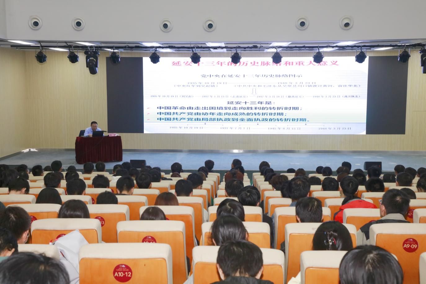 当晚,实践队观看了红色舞台剧《延安保育院》,感受革命先辈的无私奉献。随后,中国延安干部学院薛琳教授进行《党中央在延安十三年》专题授课,从理论与实践维度解读中共中央在延安和陕北领导中国革命的光辉历程。