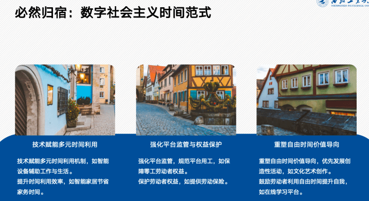 吴倩同学从马克思主义政治经济学视角切入,深入剖析了数字时代资本对劳动时间的隐蔽剥削机制,并提出了破解时间异化的实践路径,引发了与会师生的广泛讨论。吴倩指出,技术驱动的时间控制与空间扩张加剧了劳动者的生命时间异化,而数字景观的娱乐至死现象则进一步消解了个体时间主权。对此,需要加强平台监管与数据共享,以技术赋能缩短必要劳动时间以及变革生产关系,构建“数字社会主义时间范式”,推动公平时间分配与自由时间的创造性回归。吴倩同学的汇报不仅构建了数字时代时间剥削的理论分析框架,更将马克思主义政治经济学批判与当代技术社会紧密结合,为理解平台经济、零工劳动等新现象提供了新视角。