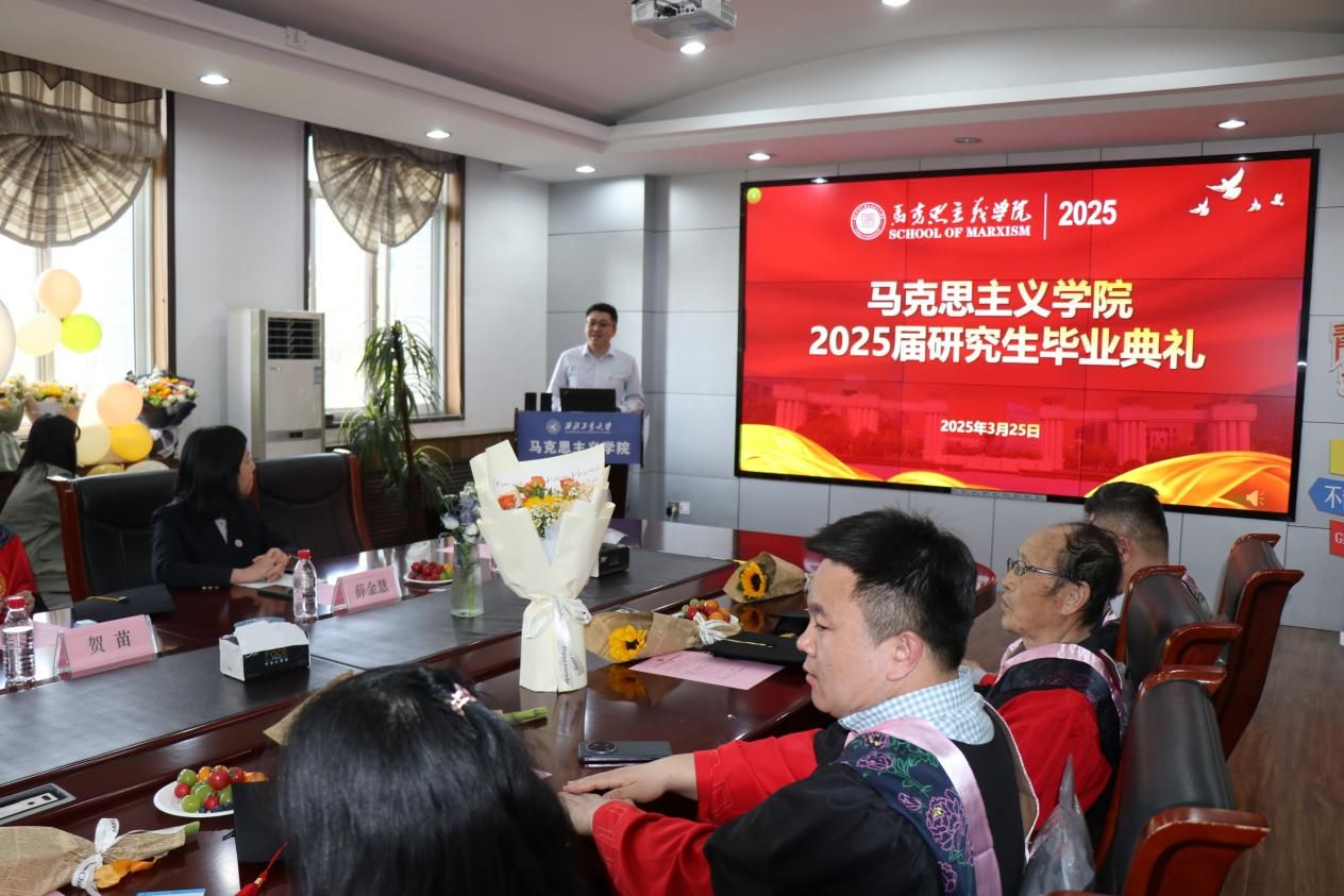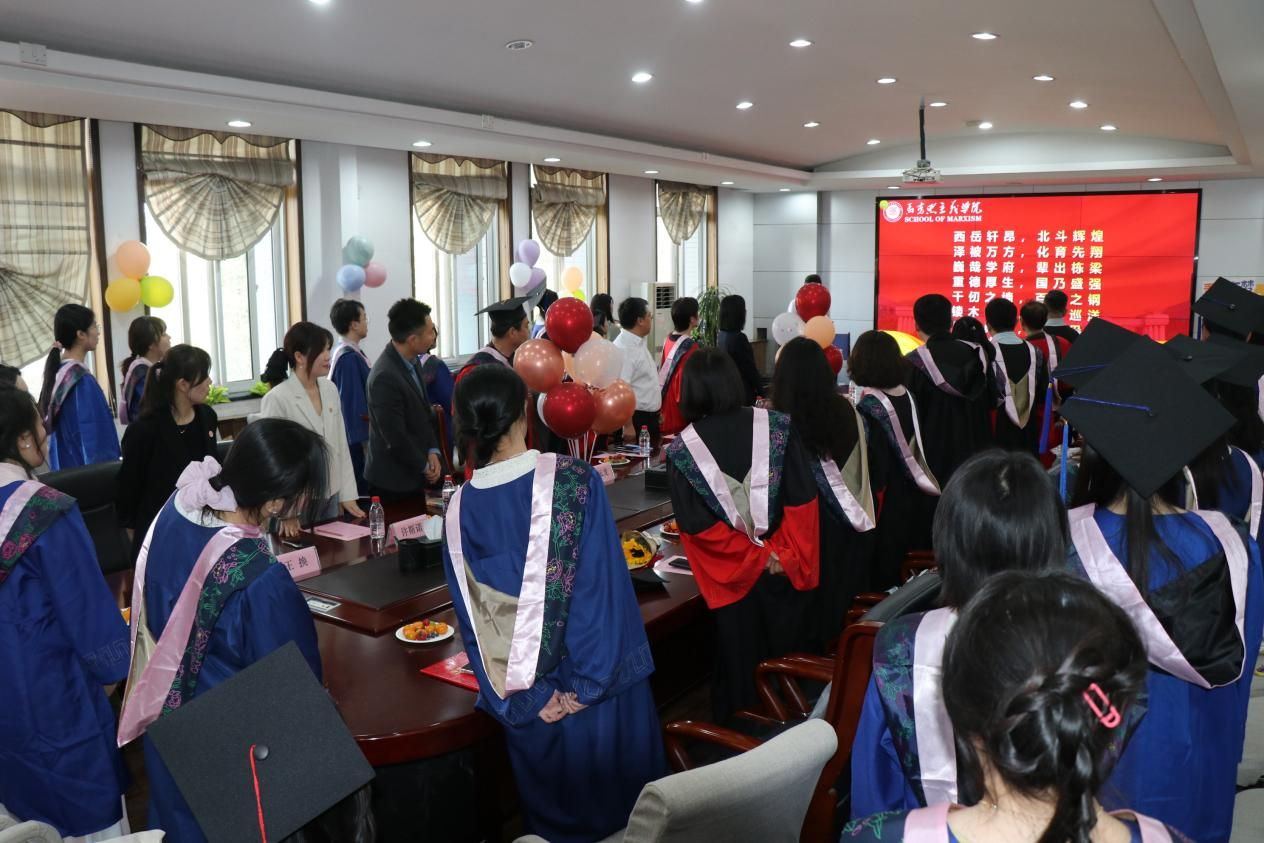 2022届研究生毕业典礼在长安校区学院楼208会议室举行。学院领导班子、研究生导师代表、毕业班辅导员、班主任以及2022届毕业生齐聚一堂,共同迎接毕业生人生中极具意义的高光时刻。本次典礼由学院党委副书记耿云辉主持。