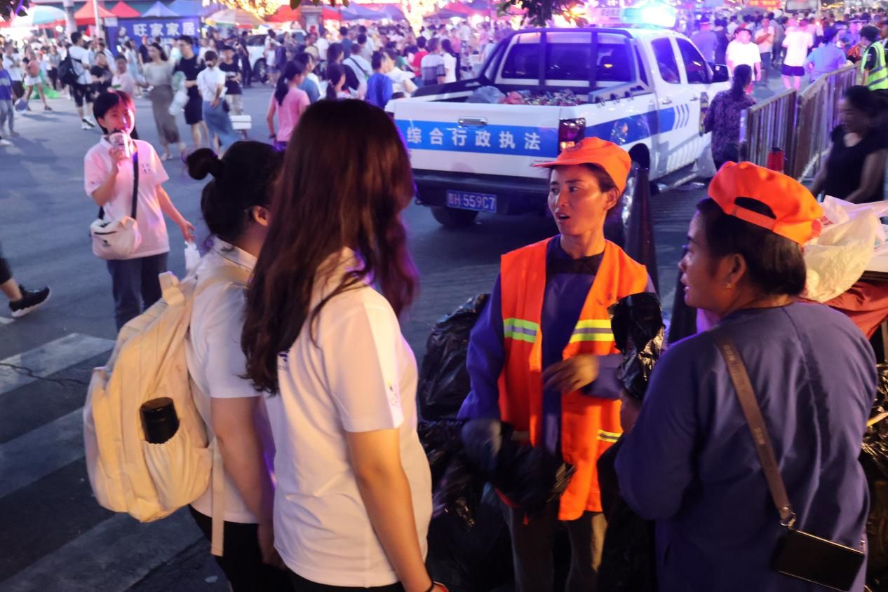 实践队队员与榕江当地环卫工人亲切交流