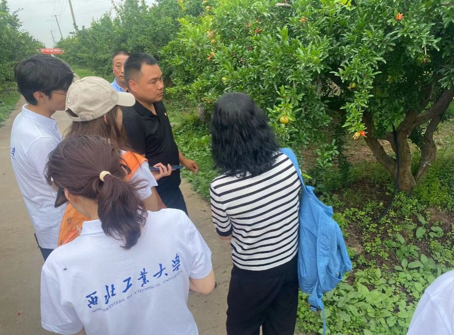图2:实践队员与石榴园区种植技术人员交流