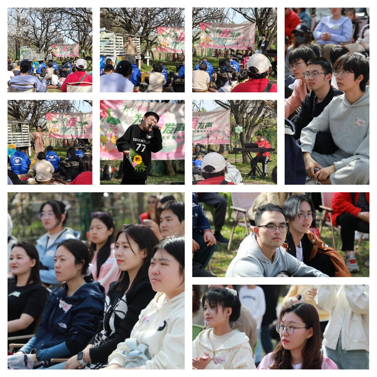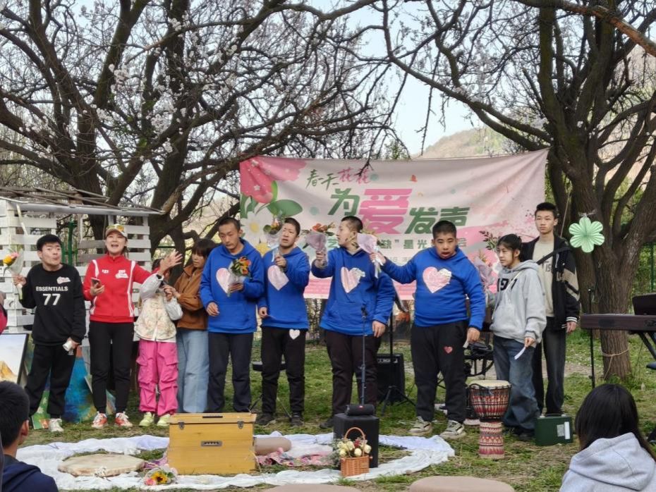 团委书记王换的带领下,赴西安长安区六十亩田户外场地参与“春天花花,为爱发声”——“艺术无残缺”星光音乐会,为此次残健共融的公益活动提供全程志愿服务。本次活动由治心科学研究院与陕西省翻译协会海伦桥国际志愿者中心联合主办,调教漫画