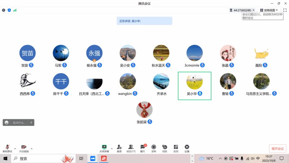 马克思主义基本原理系于10月8日晚线上组织开展集体备课会。自动化学院吴小华教授应邀参加会议,先后从“总师型”人才深刻内涵、理工学科人才应掌握的核心能力入手,作“总师型”人才培养融入教学的经验分享。此外,备课会还结合《光明日报》9月12日刊登的“躺平绝非人生正途”“躺赢只会输掉人生”“惟有奋斗不负此生”三堂大思政课内容展开,集中探讨了“躺平”“躺赢”“内卷”等社会情绪及现象,并从多个视角探讨了如何运用马克思主义立场观点方法有效思考和应对这些问题。