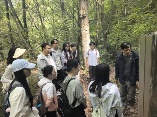 他们首先探访了位于陕西省安康市宁陕县的陕西省秦岭生态智能化监测与保护重点实验室,生态学院老师详细讲述了秦岭皇冠大样地的“点”平台、秦岭不同海拔样地布设与监测的“线”平台、秦岭生态系统碳汇监测平台的“面”平台,让师生们系统性、沉浸式体验了前沿技术对秦岭生态进行实时、精准监测与保护的创新实践,深刻感受了现代科技赋能生态保护的强大力量。