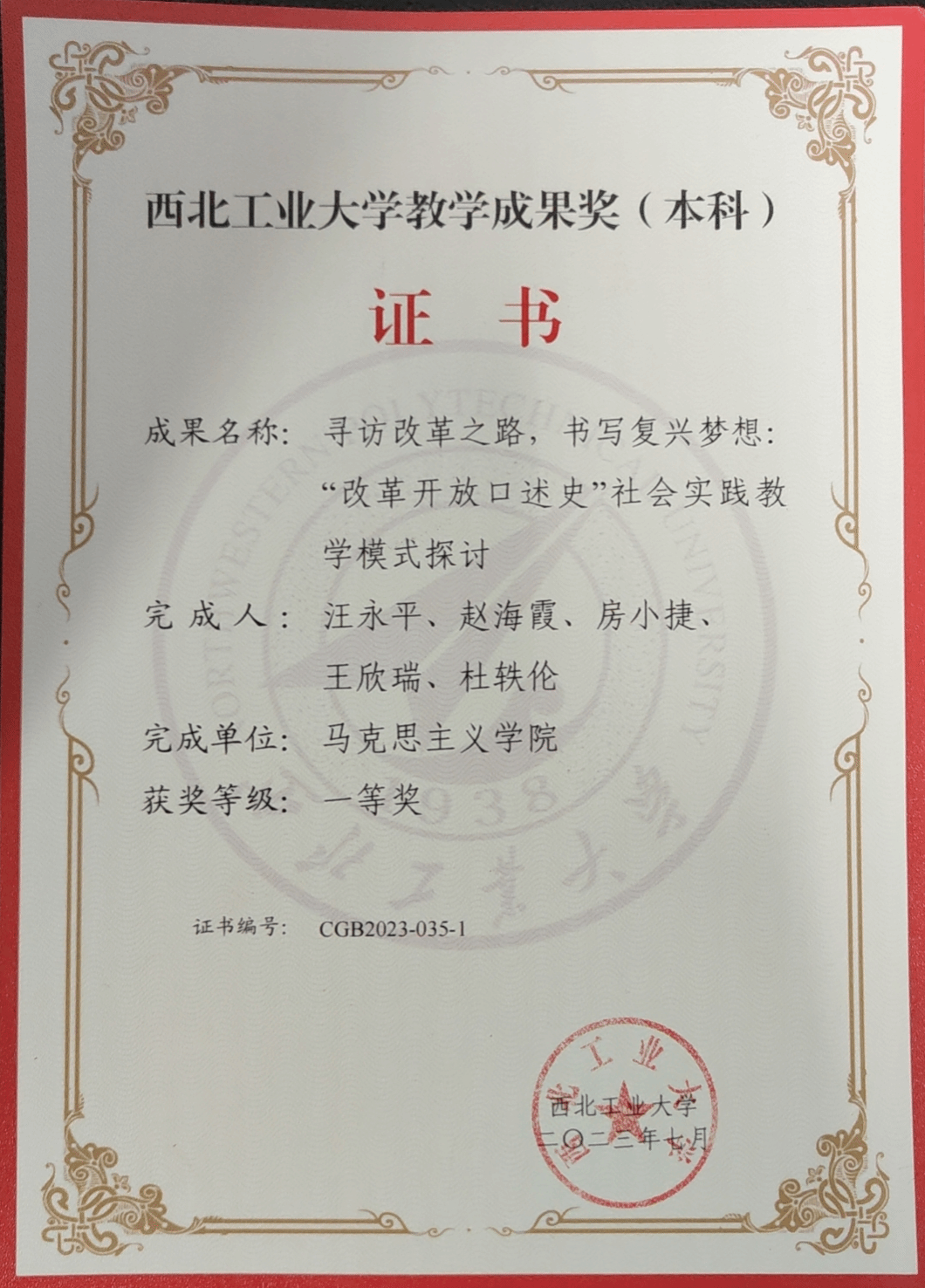 从2018年起,汪永平老师主持了《中国近现代史纲要》课程中开展的“改革开放口述史”社会实践。作为负责人,汪永平老师带领课程团队,对学生进行指导。她亲自拟定教学大纲,制定操作规范,聘请专家对师生进行培训,指导学生撰写报告,主持优秀口述史的颁奖,并带领学生进行暑期社会实践,参加“口述史国际周”学术活动等,形成完整的教学科研闭环。在教学理念、教学方法、教学模式、教育路径方面进行系统改革,在课程实践性、研究性、思想性及整体性等方面都取得明显成效。六年来,使众多授课学生增强了制度自信、道路自信与文化自信,增强了国家认同感与政党认同感。该项目获得2023年调教漫画