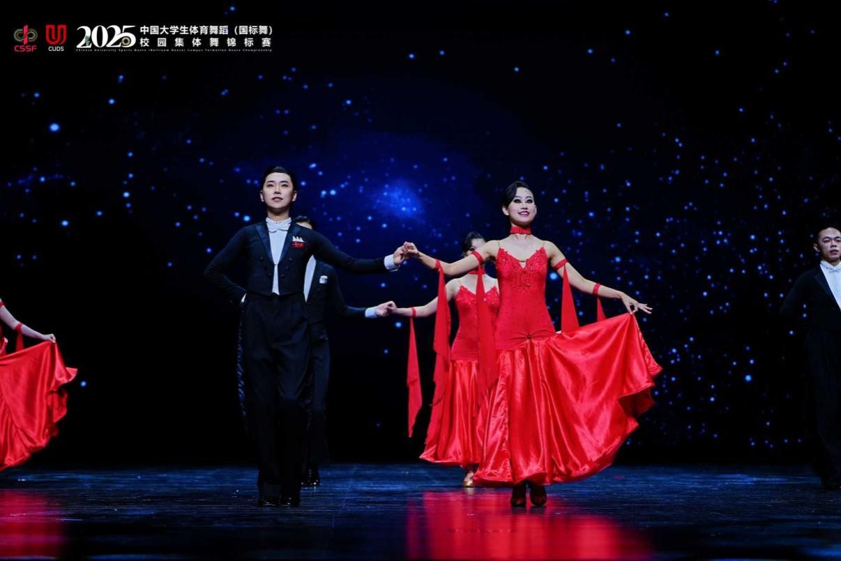 赛场上,谢琳凭借扎实的技术功底、灵动的舞台表现,成为团队亮眼力量:在华尔兹组别比赛中,她与搭档步伐精准、旋转流畅,队形编排的巧思与双人配合的默契相得益彰;恰恰组别比拼里,她对动作力度、节奏把控恰到好处,与队友的配合默契。她用稳定的发挥,助力团队拿下全国冠、亚军的奖项。