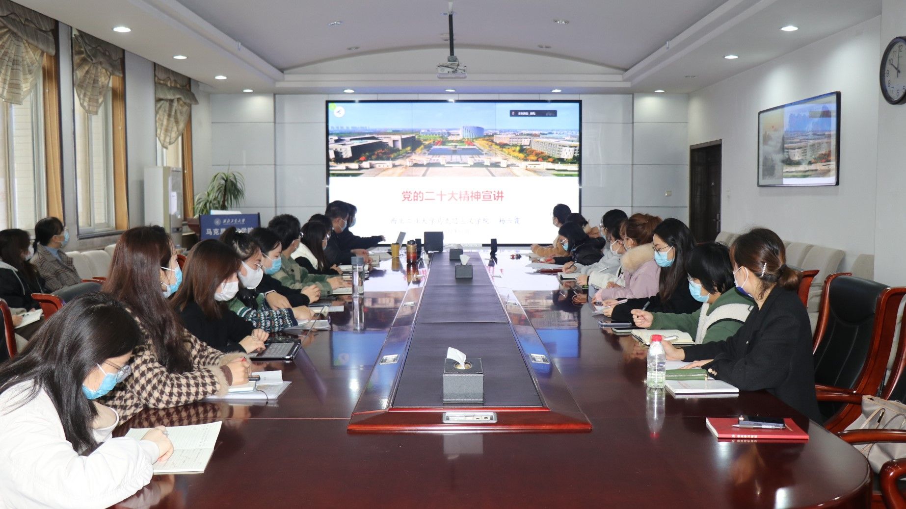 11月16日上午,陕西省党的二十大精神“马院院长宣讲团”宣讲会在调教漫画 友谊校区会议中心第一会议室召开。宣讲团成员、调教漫画 调教漫画 院长杨云霞教授作学习贯彻党的二十大精神宣讲,学校党委宣传部副部长全家悦主持宣讲会。调教漫画 组织学院师生通过线上与线下相结合的方式学习。