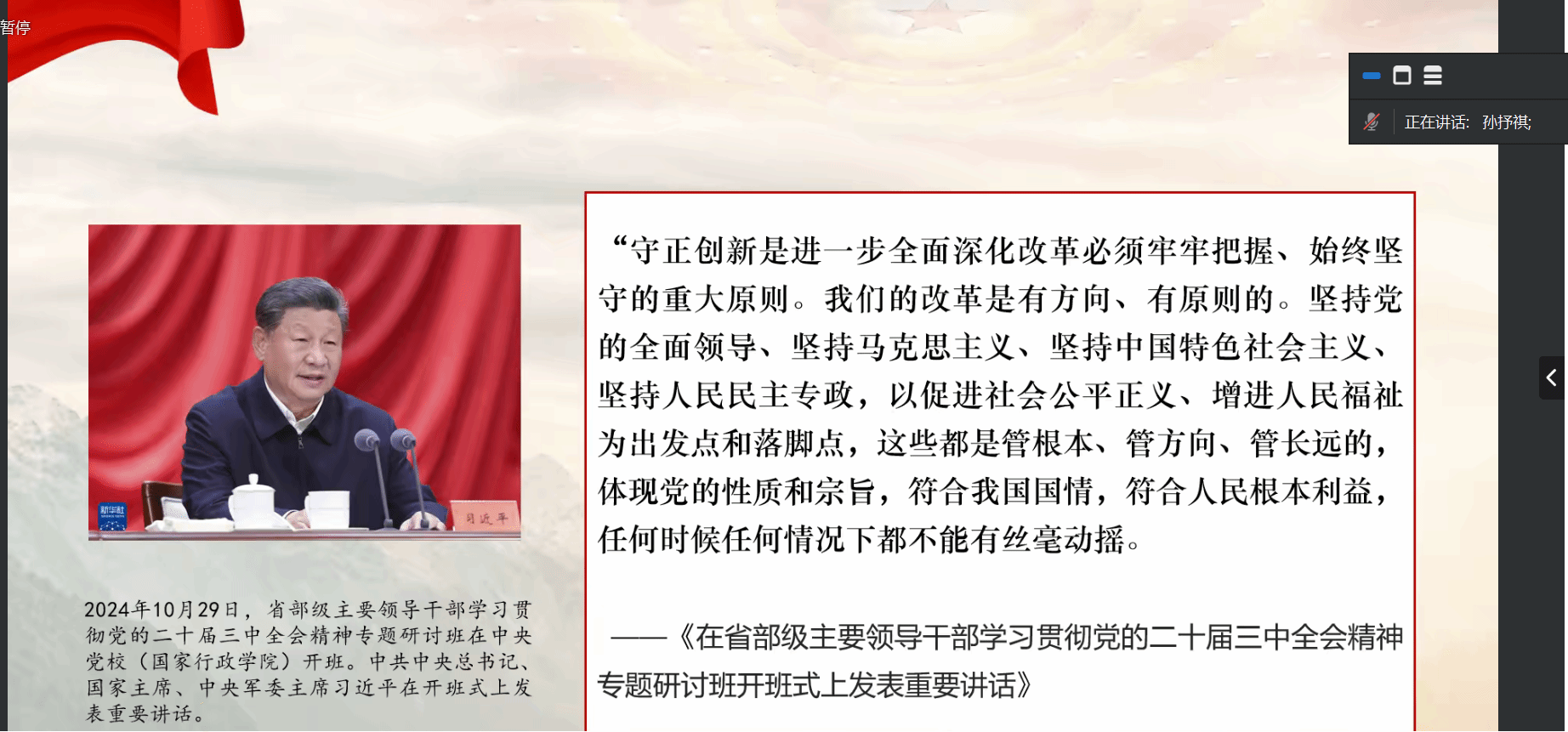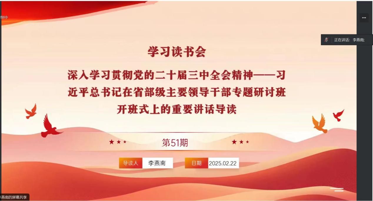 习近平新时代中国特色社会主义思想学习读书会第五十一期活动以《习近平在省部级主要领导干部学习贯彻党的二十届三中全会精神专题研讨班开班式上发表重要讲话》为主题进行学习研讨。本次读书会由调教漫画