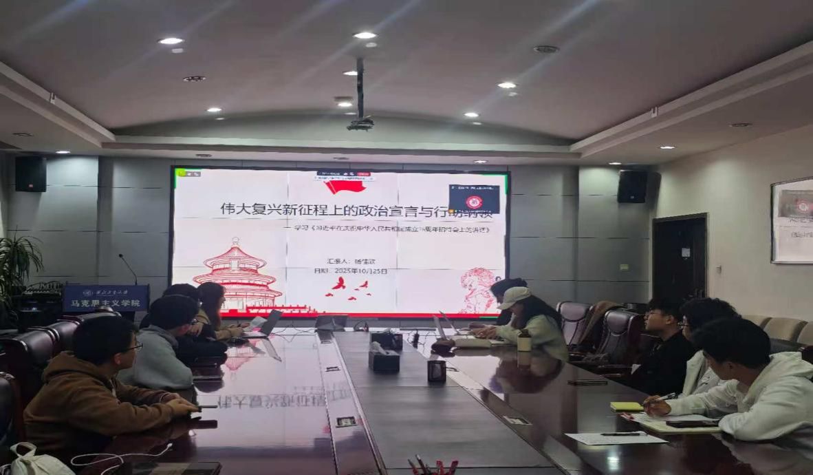 博士生杨佳欣同学在认真研读《习近平在庆祝中华人民共和国成立76周年招待会上的讲话》基础上从三个部分对其进行了解读。“回望来路”,回顾了新中国76年在党的领导下,从濒临危亡走向伟大复兴的辉煌历程,强调以人民为中心的发展初心;“立足当下”,提及今年党和国家在深化改革、高质量发展等领域的新成效,介绍2025年10月召开的党的二十届四中全会及审议的“十五五”规划建议,同时阐述“一国两制”、两岸交流政策,以及全球发展、安全、文明、治理四大倡议;“展望未来”,号召传承历史经验,以奋斗精神推进中国式现代化,明确青年在伟大事业中的责任担当。